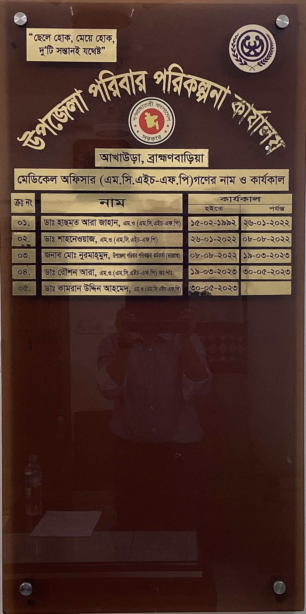| উপজেলা মেডিকেল অফিসার (এমসিএইচ-এফপি) গণের নাম ও কার্যকাল | ||||